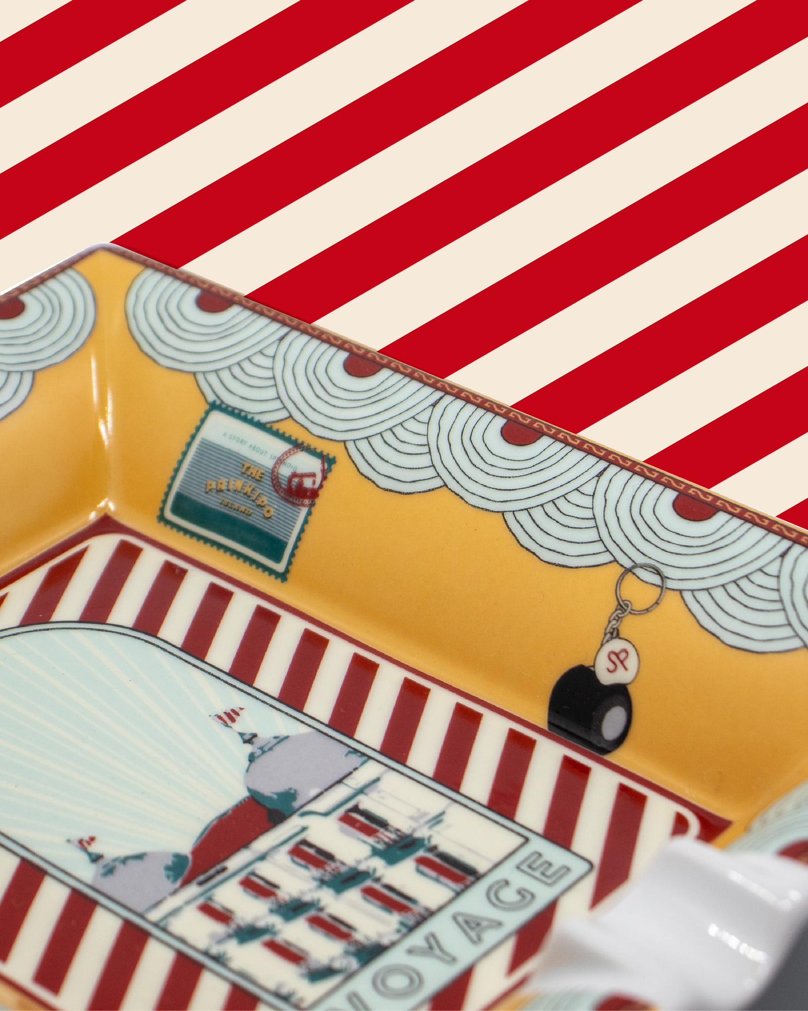 Splendid x Gorgo Iruka Ashtray, Mini Tray Gorgo Iruka, known for its distinctive approach to home decoration and tableware sets, recently collaborated with magnificent Splendid Palas. Inspired by the whimsical worlds of Wes Anderson, this unique collection transforms the hotel's iconic domes into stylized postage stamps, capturing the essence of a voyage.